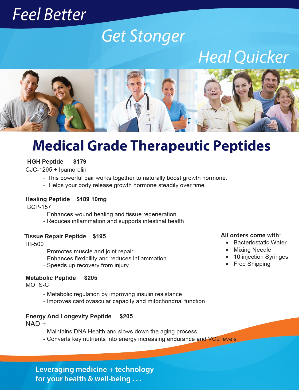 If you are interested in ordering Therapeutic Peptides, please review the types of Peptides and their prices below, then fill out the online form below that and hit submit.  Our office staff will reach out to you to confirm your order once we receive your paperwork.